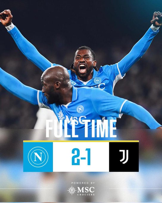 Los napolitanos igualaron en el 57', con un tanto de cabeza del camerunés Andre Zambo Anguissa y luego se pusieron por delante con un penal transformado por el belga Romelu Lukaku (69').