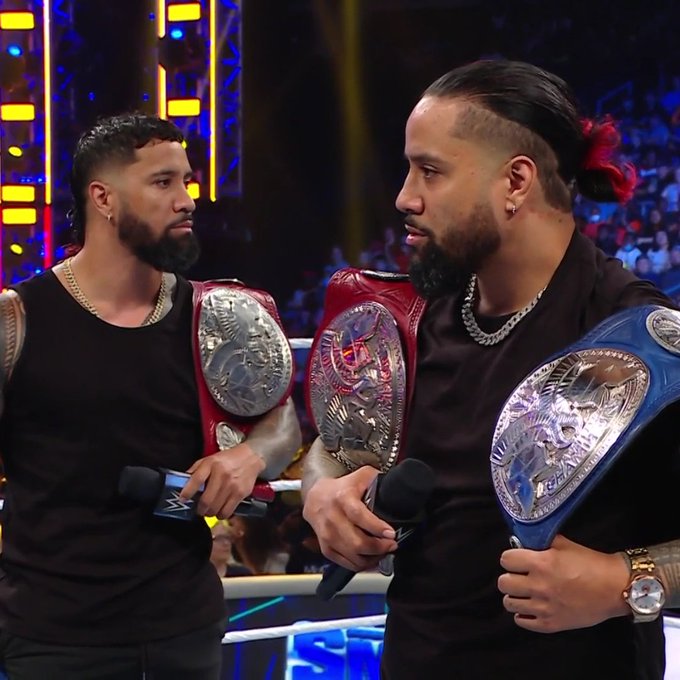 The Usos abrieron el show dando un discurso en el cual le agradecían al Universo WWE por su apoyo a través de los años, pero todo terminó siendo un engaño para después insultarlos a ellos y a RK-Bro. Shinsuke Nakamura terminó con la fiesta y junto con Riddle, sacaron a los campeones en pareja del cuadrilátero.