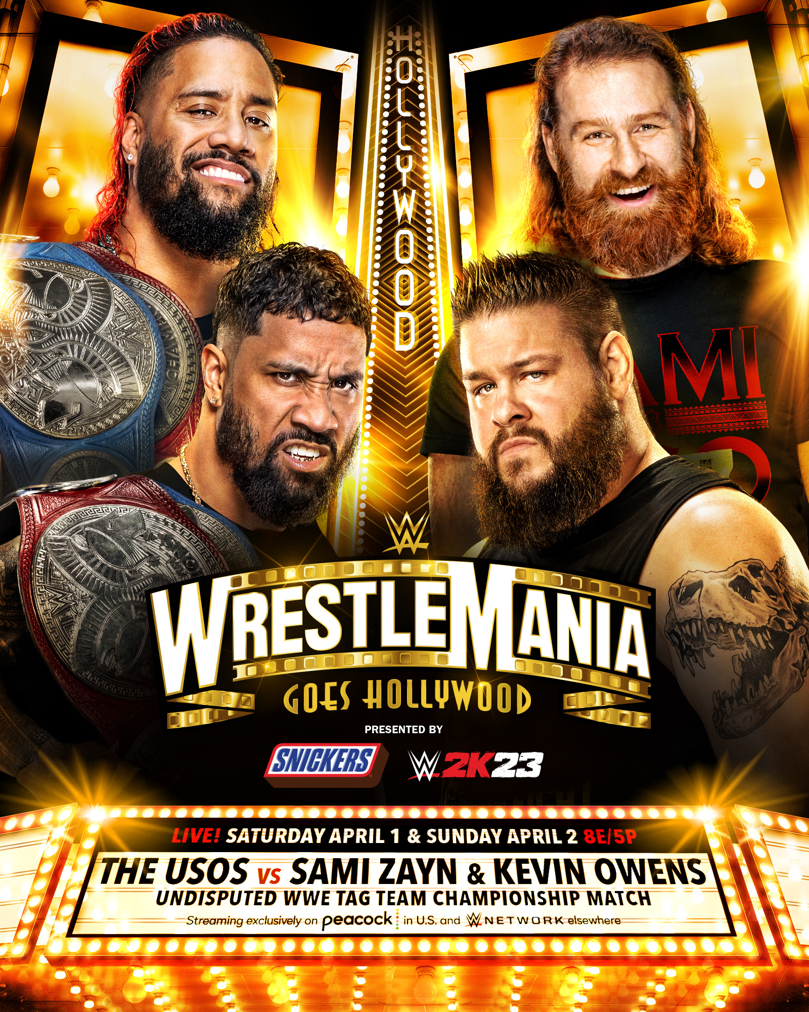 Kevin Owens y Sami Zayn se enfrentarán a The Usos en Wrestlemania 39 por los Campeonatos Unificados en Pareja de WWE. La lucha se confirmó luego del careo que tuvieron ambos equipos al inicio de Monday Night RAW, el cual incluso llegó a los golpes.