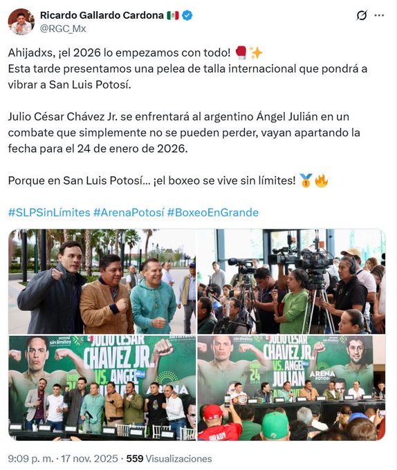 En conferencia de prensa y a través de sus redes sociales, el hijo de la leyenda del boxeo mexicano e internacional confirmó que el próximo 24 de enero se enfrentará ante el argentino Ángel Julián Sacco en el estado de San Luis Potosí.