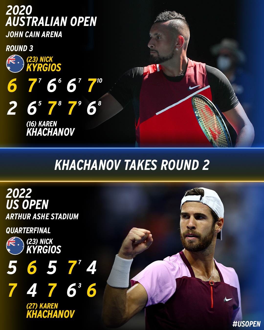 El partido se convirtió en un diluvio de aces, 31 de Kyrgios y 30 de Khachanov, y cada rotura de servicio costaba un mundo.