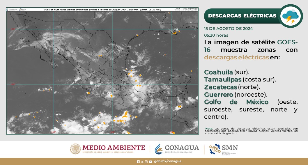 Los mexicanos deberán prepararse ya que los días nublados y lluviosos continuarán este jueves 15 de agosto de 2024, esto según lo revelado por la Comisión Nacional del Agua (Conagua), ya que la onda tropical No.16 se desplazará sobre el centro, sur y gradualmente el occidente de México.