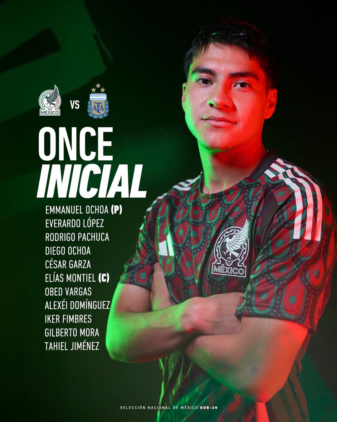 El representativo nacional repite su base que le ha dado alegrías a la afición mexicana, con su tridente integrado por Gilberto Mora, Elías Montiel y Obed Vargas como el péndulo en su esquema.